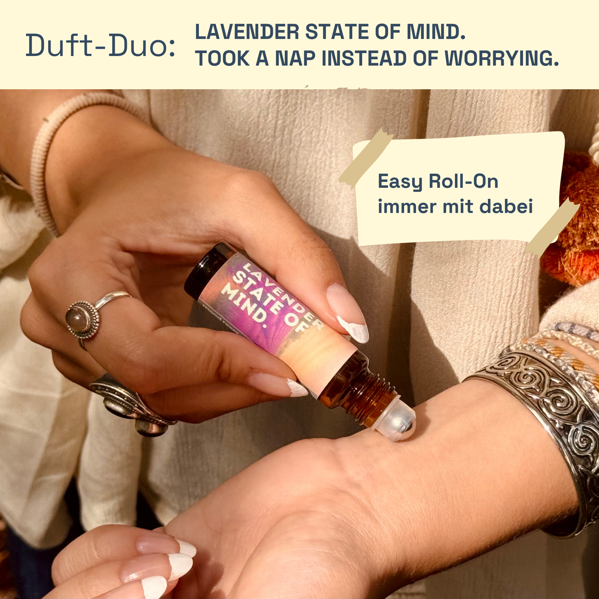 Du kannst verschiedene Roller an unterschiedlichen Pulspunkten auftragen oder sie sogar übereinander schichten - jede Kombination erzählt eine andere Geschichte und passt zu verschiedenen Stimmungen.