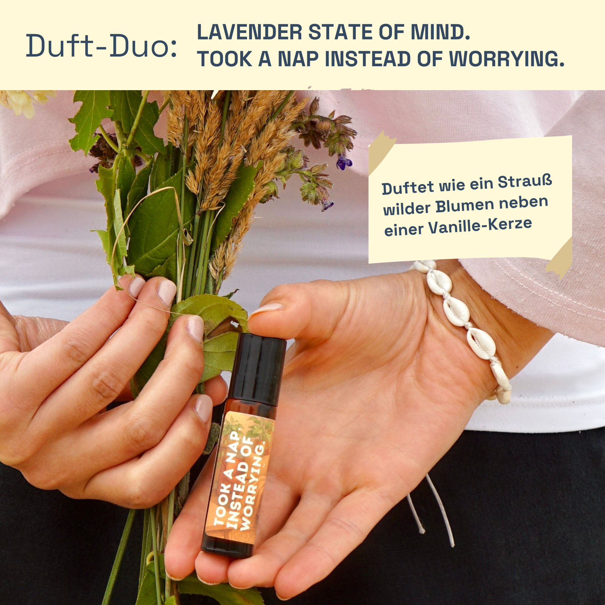 Kopfnoten Neroli - Orangenblüten (Lavender state of mind) // Bergamotte (Took a nap instead of worrying.)
