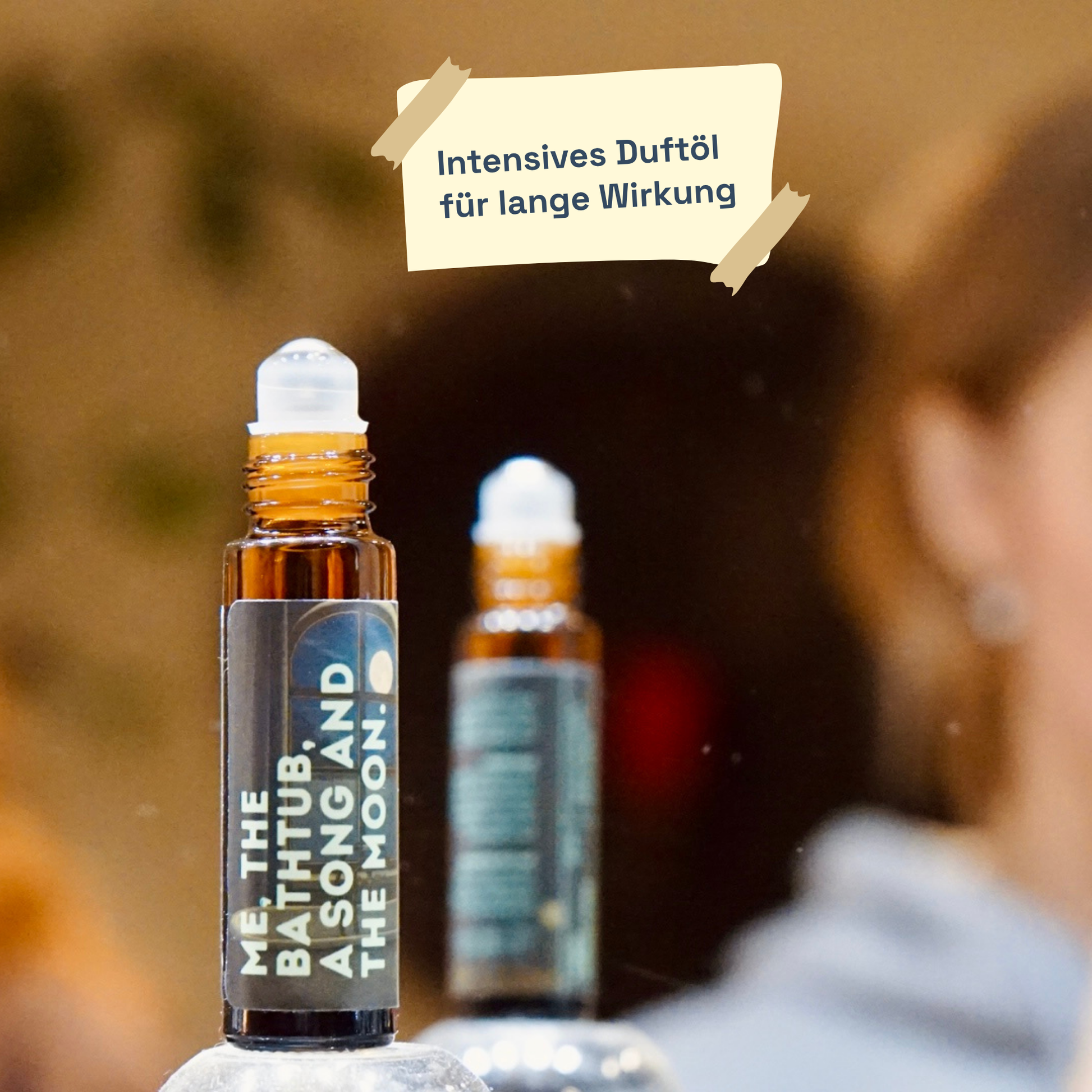 MOMENT: Die Badewanne voller heißem Wasser, Kerzen brennen auf dem Rand und der Mond scheint durchs Fenster. Cranberry riecht süß-sauer wie ferne Erinnerungen aus der Kindheit, intensiv rot und voller Erinnerungen. Rosenöl schwimmt auf dem Wasser und duftet sinnlich und weich. Kakao liegt warm in der Luft wie heiße Schokolade an einem kalten Abend, während Dein Lieblingssong leise läuft und die Zeit stillsteht.